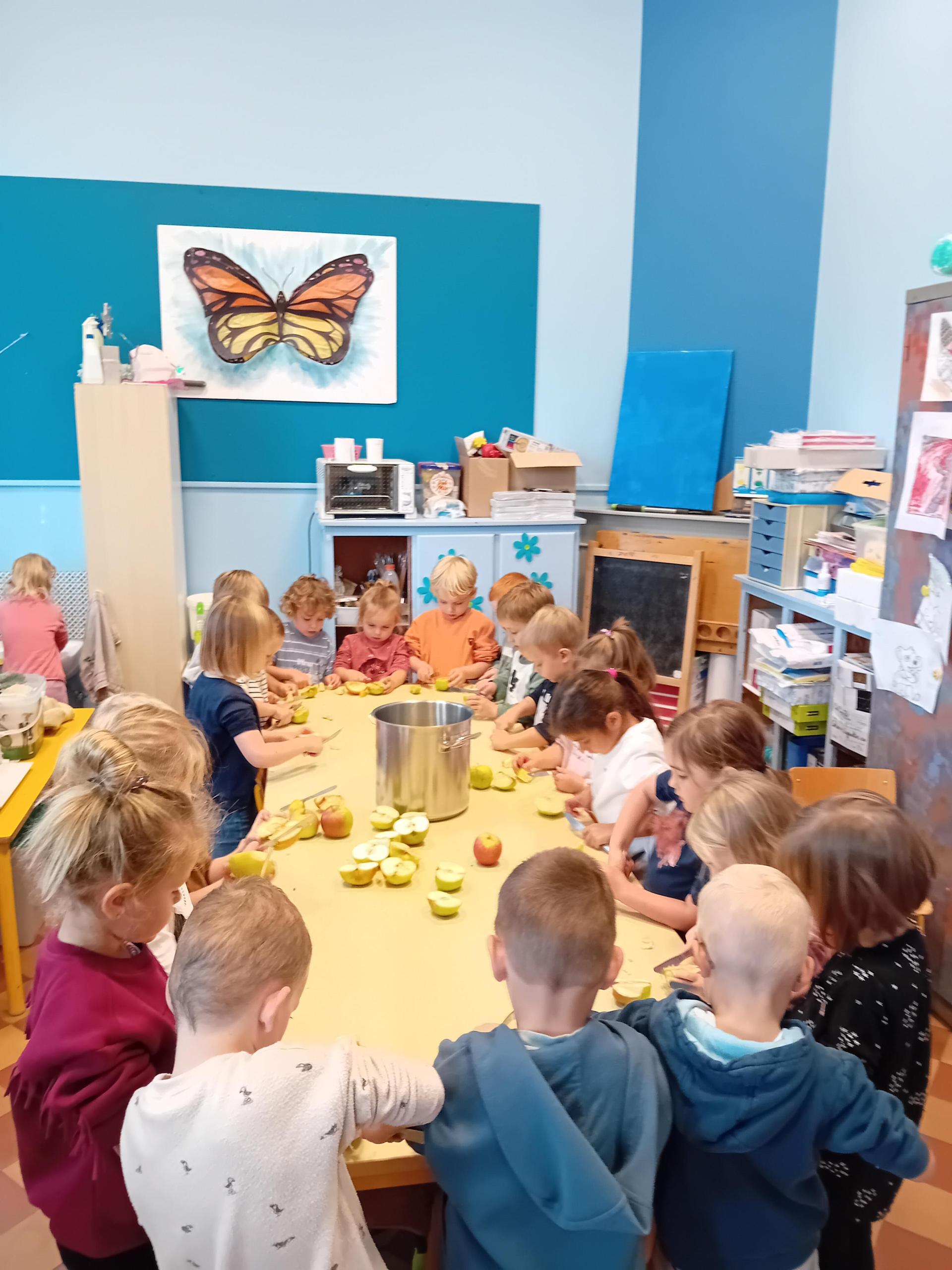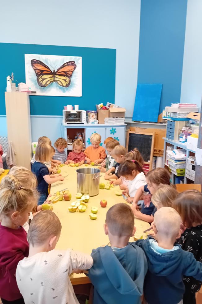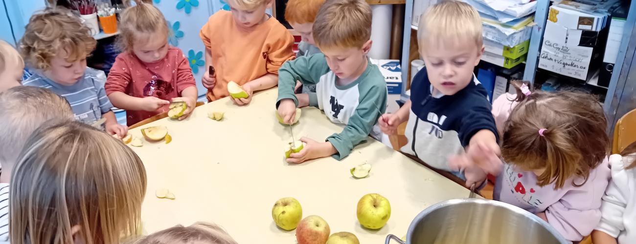 Les enfants de M2 ont plongé avec enthousiasme dans le délicieux univers de la pomme ! Tout au long de la semaine, ils ont mené de nombreuses découvertes : observation des différentes variétés, exploration de la texture, du goût et même de l’odeur de ce fruit si apprécié. Pour clôturer ce thème gourmand, ils ont mis la main à la pâte en réalisant eux-mêmes de la compote et une tarte aux pommes pour la collation. Un moment de partage et de plaisir qui a ravi les petits gourmets… et leurs papilles !