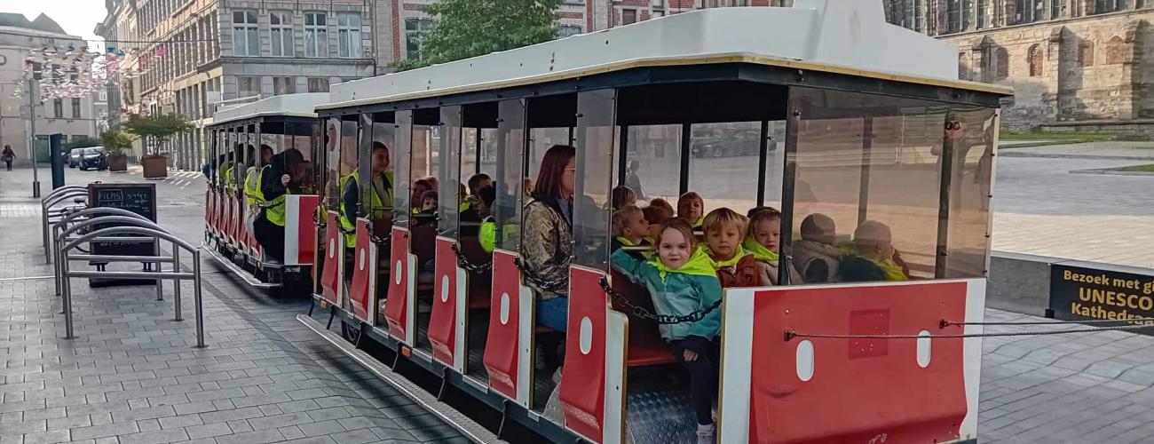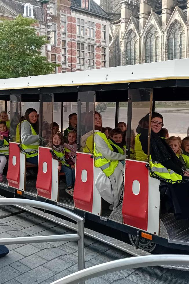 Nos élèves de M2 et M3 ont bien commencé leur journée de classe de patrimoine à Tournai ! Après leur arrivée, ils ont embarqué à bord du petit train touristique pour une découverte ludique de la ville. Ensuite, direction l’office du tourisme où ils ont visionné un film captivant sur l’histoire et les trésors de notre belle cité.