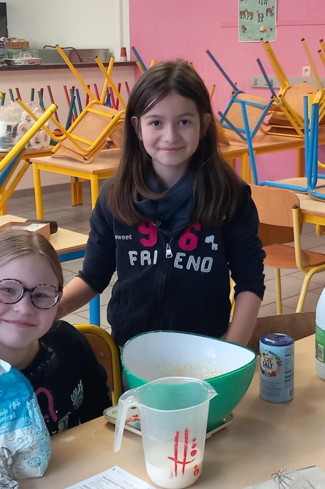 Les élèves de P4 ont préparé une pâte à crêpes. Cette activité leur a permis de travailler la lecture et la compréhension d’un texte fonctionnel, en repérant les différentes étapes et les ingrédients nécessaires. Ils ont également exercé des compétences en mathématiques en respectant les proportions et en mesurant les grandeurs.
